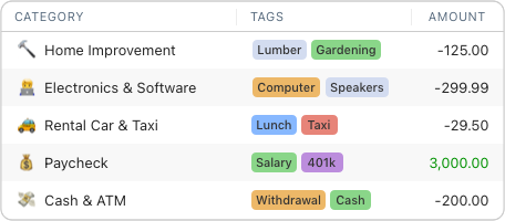 Want to see your finances your way? Create fully customizable views & reports and even add your own tags to track anything you want to, across all your categories and accounts.