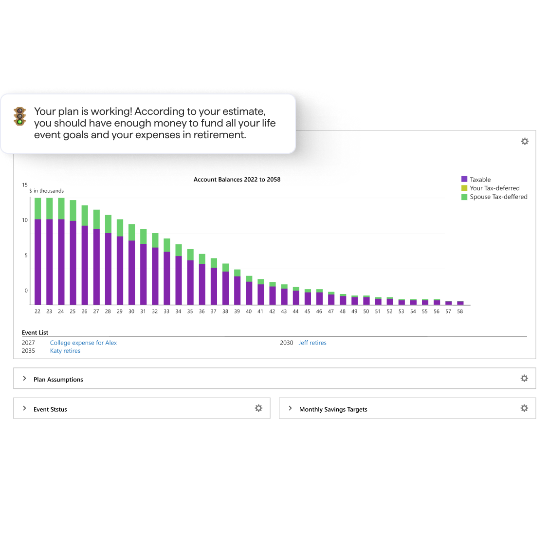 If you’re saving for retirement, Quicken Lifetime Planner* gives you a better path forward. Run projections based on savings and age, model tax implications, and optimize your strategy. No guess-work, just real insights.