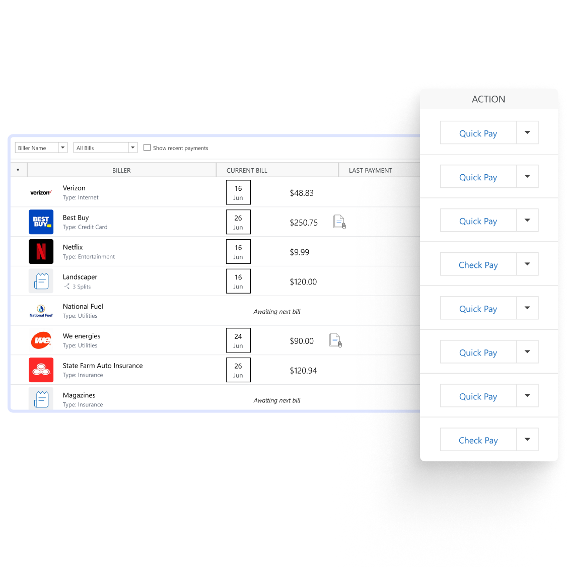 Pay over 10,000 billers, securely & directly, right in Quicken. View what’s due and when, schedule your payments, and track it all. Pay online with bank-grade security, or have Quicken mail a check for you. It’s that easy.